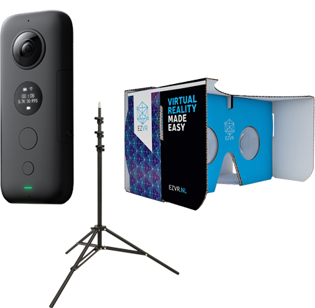 With our starter kit, you can start making virtual reality tours right away. In addition to a one-year subscription to EZVR, you'll receive a VR camera, a tripod and a cardboard VR headset.